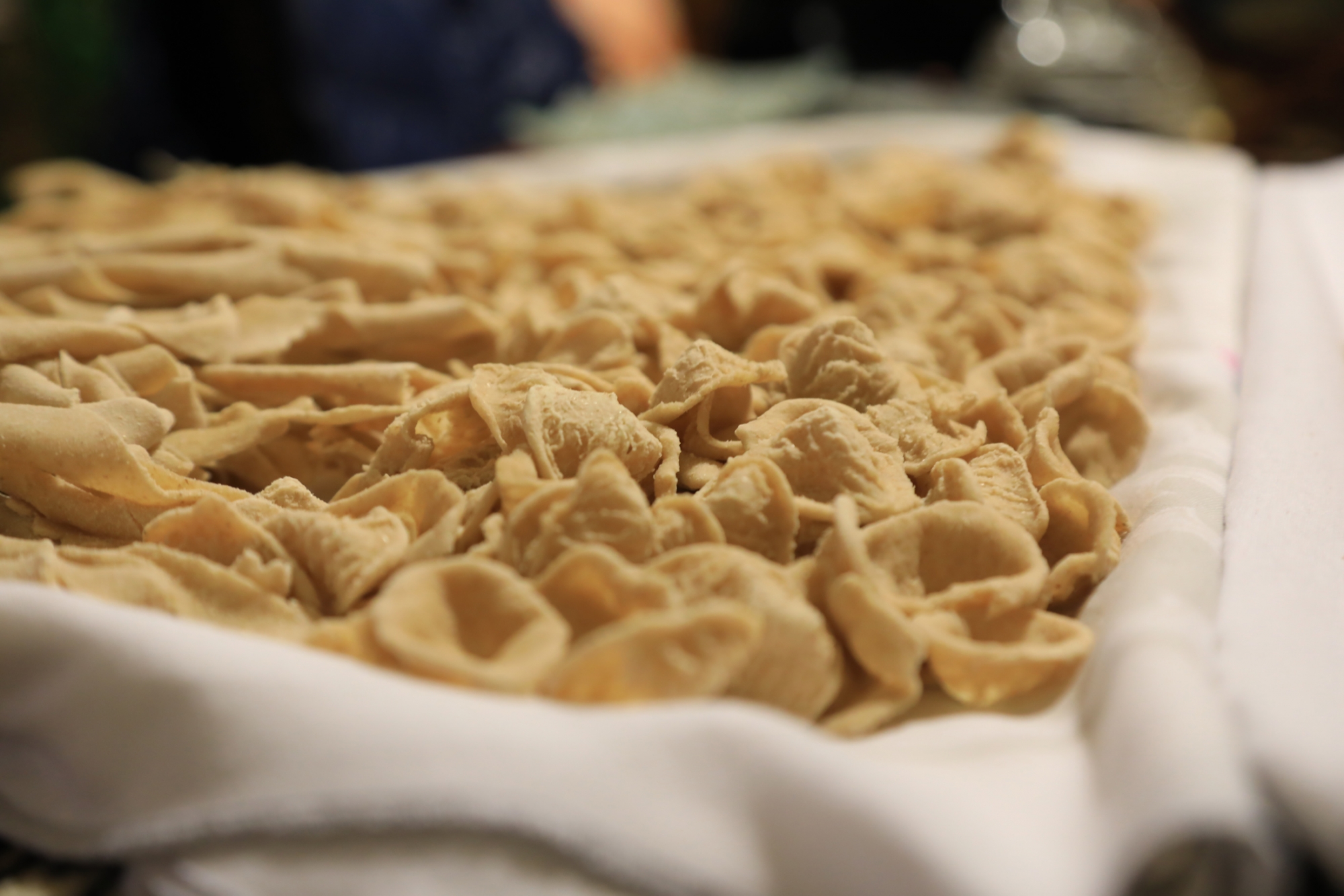 Unter den Nudelgerichten sind die Tagliatelle mit Kichererbsen, die ‚ciceri e tria‘ eine Spezialität. Die barocken Formen Apuliens findet man in den ‚Sagne ’ncannulate‘ wieder, während die ‚Orecchiette‘ und die ‚Minchiarieddhri‘ an die Bischofsmützen erinnern, deren Formen vielerorts an Portalen von Kirchen zu finden sind. Diese Pastasorten werden mit Tomatensoße, Ricotta (Frischkäse) und Basilikum angerichtet. Die ‚Taieddhra‘ sind eine Nudelsorte, die mit Kartoffeln, Zucchini, Tomaten, Artischocken, viel Zwiebeln und Miesmuscheln zubereitet wird. Weitere ‚Primi Piatti‘ sind die Spaghetti mit Brotbröseln und Sardellen, die Pasta mit Meeresfrüchten, die Kichererbsen und Bohnen, die im traditionellen Tontopf, der ‚Pignata‘, gekocht werden. ‚Vermicelli con Baccalà‘ sind dünne lange Nudeln mit Stockfisch, das traditionelle Gericht an Heiligabend.